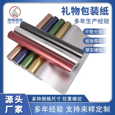 跨境圣诞节礼物包装纸卷装镀铝哑光反光44cm门幅纯色大尺寸礼物纸
