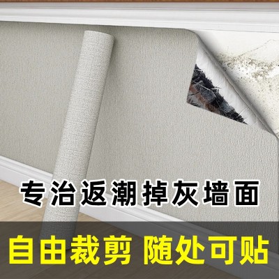 水泥掉灰墙专用墙纸壁纸家装遮丑贴纸防水防潮耐脏亚麻3d自粘墙贴