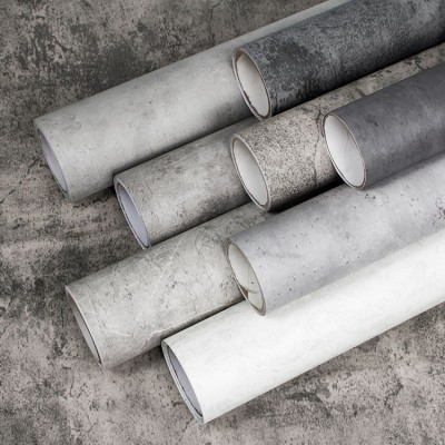 墙纸自粘批发水泥灰复古防水墙贴纸工业风展厅背景墙壁纸波音软片