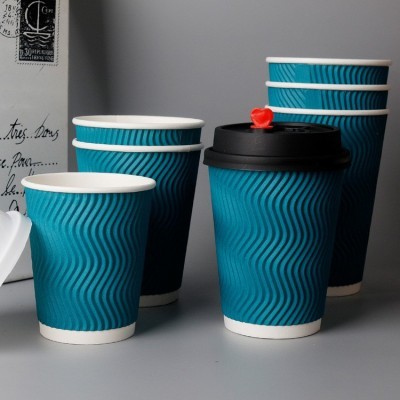 一次性瓦楞纸杯制定咖啡奶茶隔热外带打包纸杯现货批发蓝色热饮杯