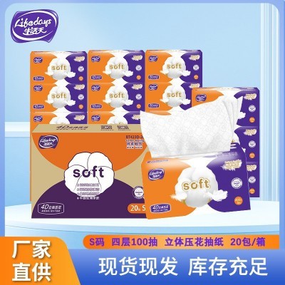 生活天实惠装四层100抽S码面巾纸抽餐巾纸卫生纸巾家用抽纸大量批