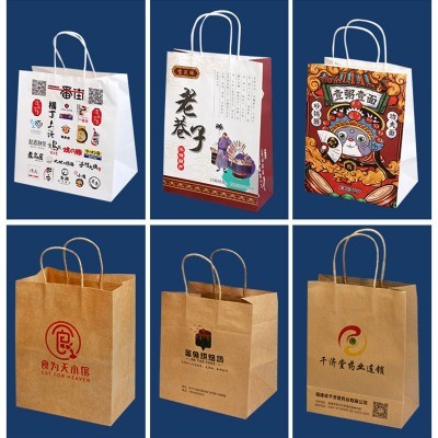 牛皮纸袋奶茶打包袋烘焙外卖包装礼品袋牛皮纸手提袋批发 印刷logo