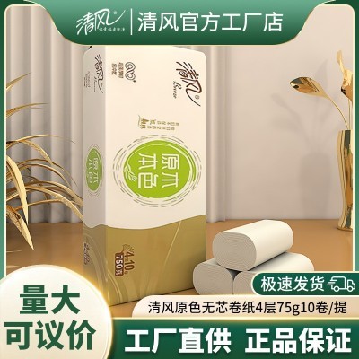 清风无芯卷纸原色卷纸本色纸正品4层加厚工厂店优惠价卷纸厕纸